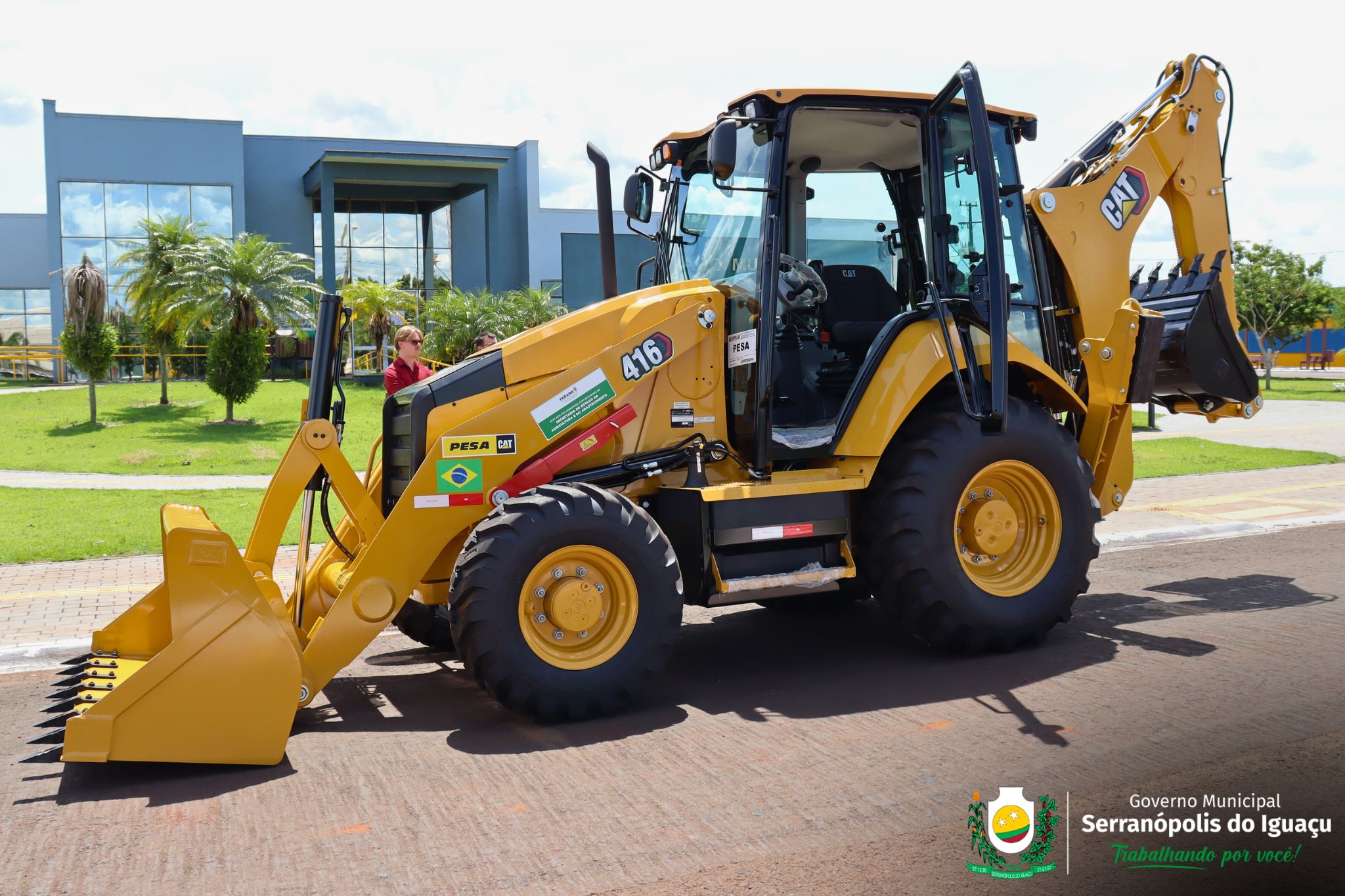 O Governo Municipal de Serranópolis do Iguaçu recebeu uma nova retroescavadeira hidráulica Caterpillar 416, zero horas, modelo e ano 2025, que passa a integrar a frota municipal e fortalecer os trabalhos desenvolvidos pela administração pública, com foco especial nas demandas da área rural.